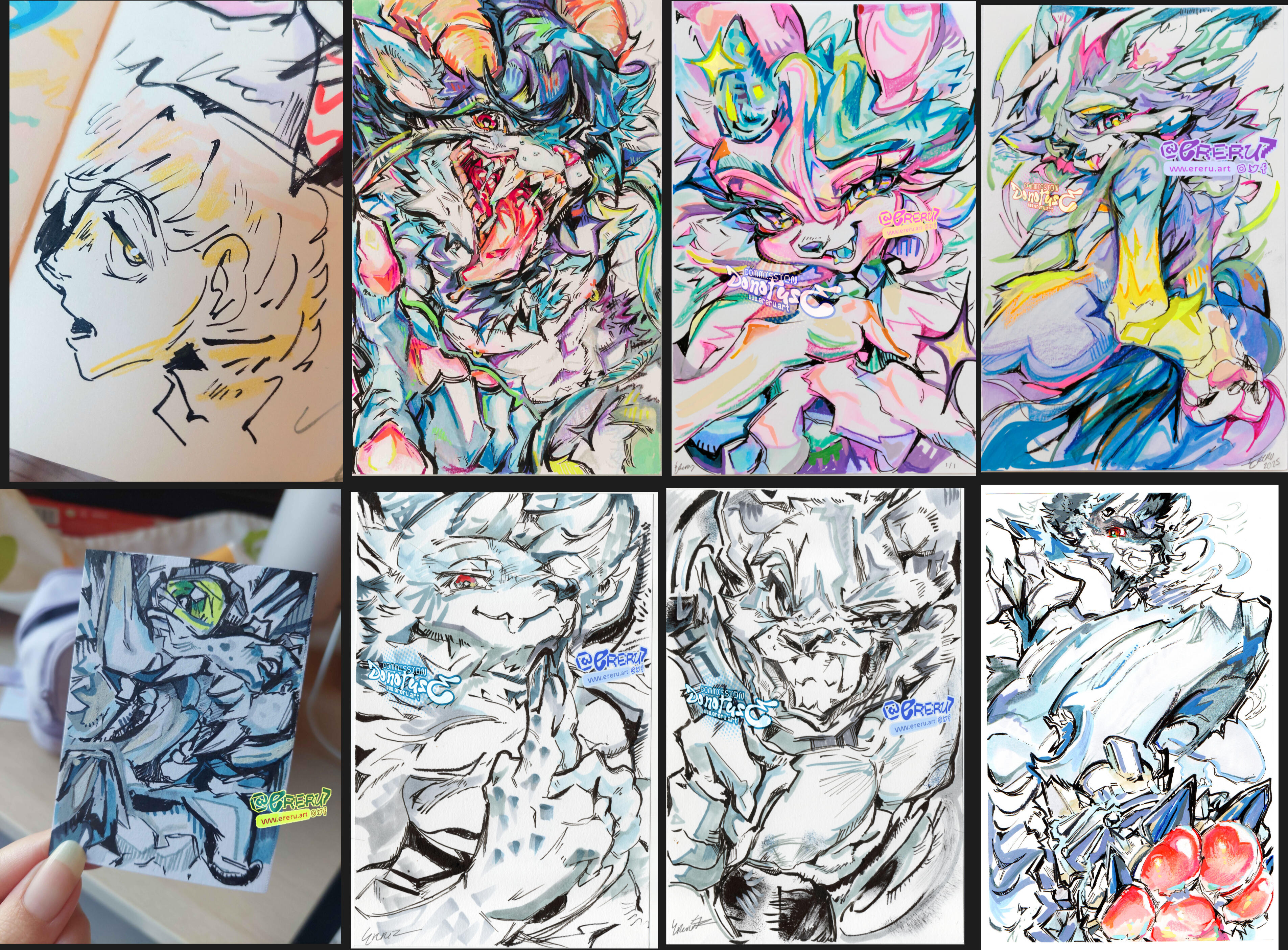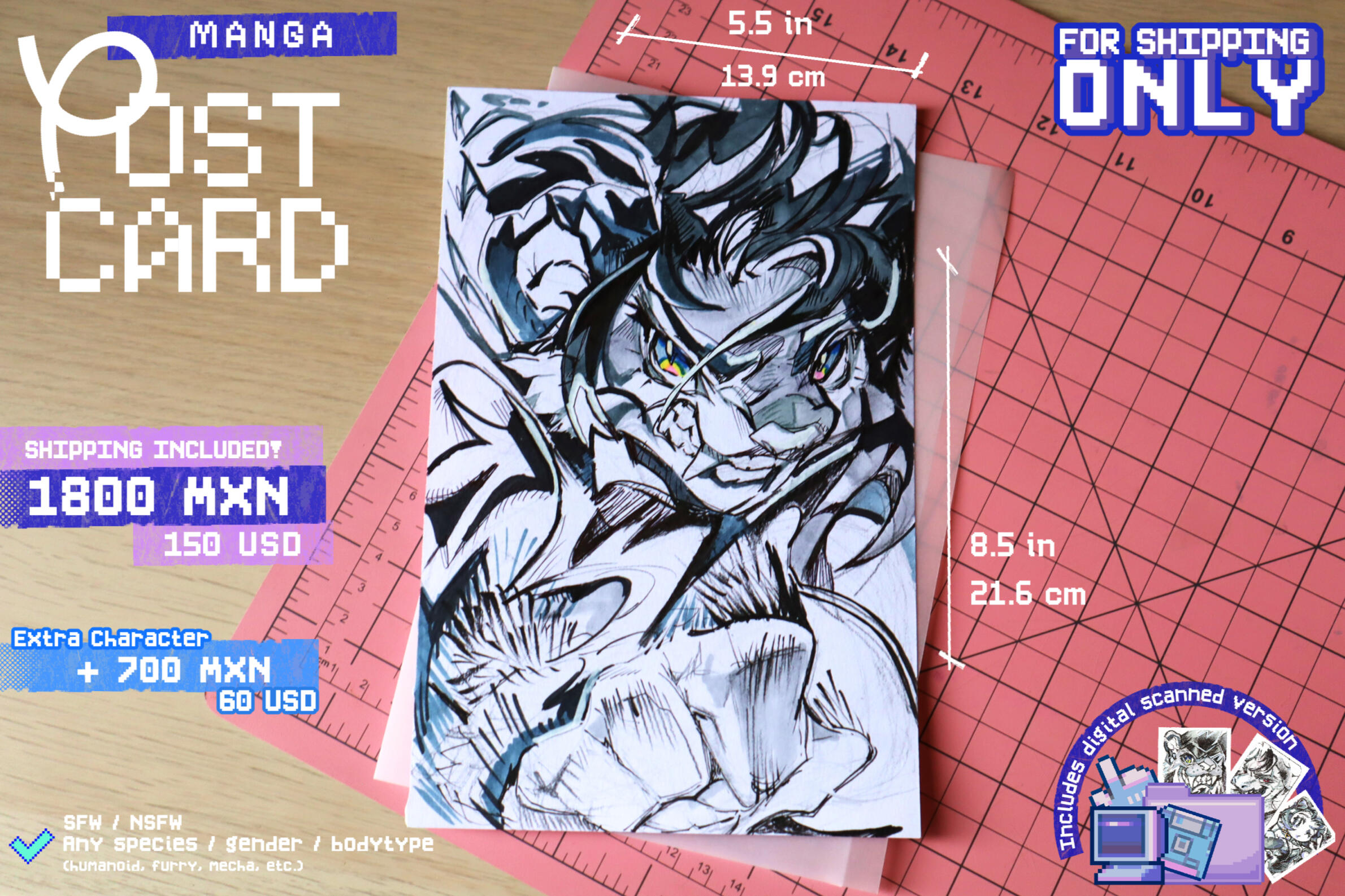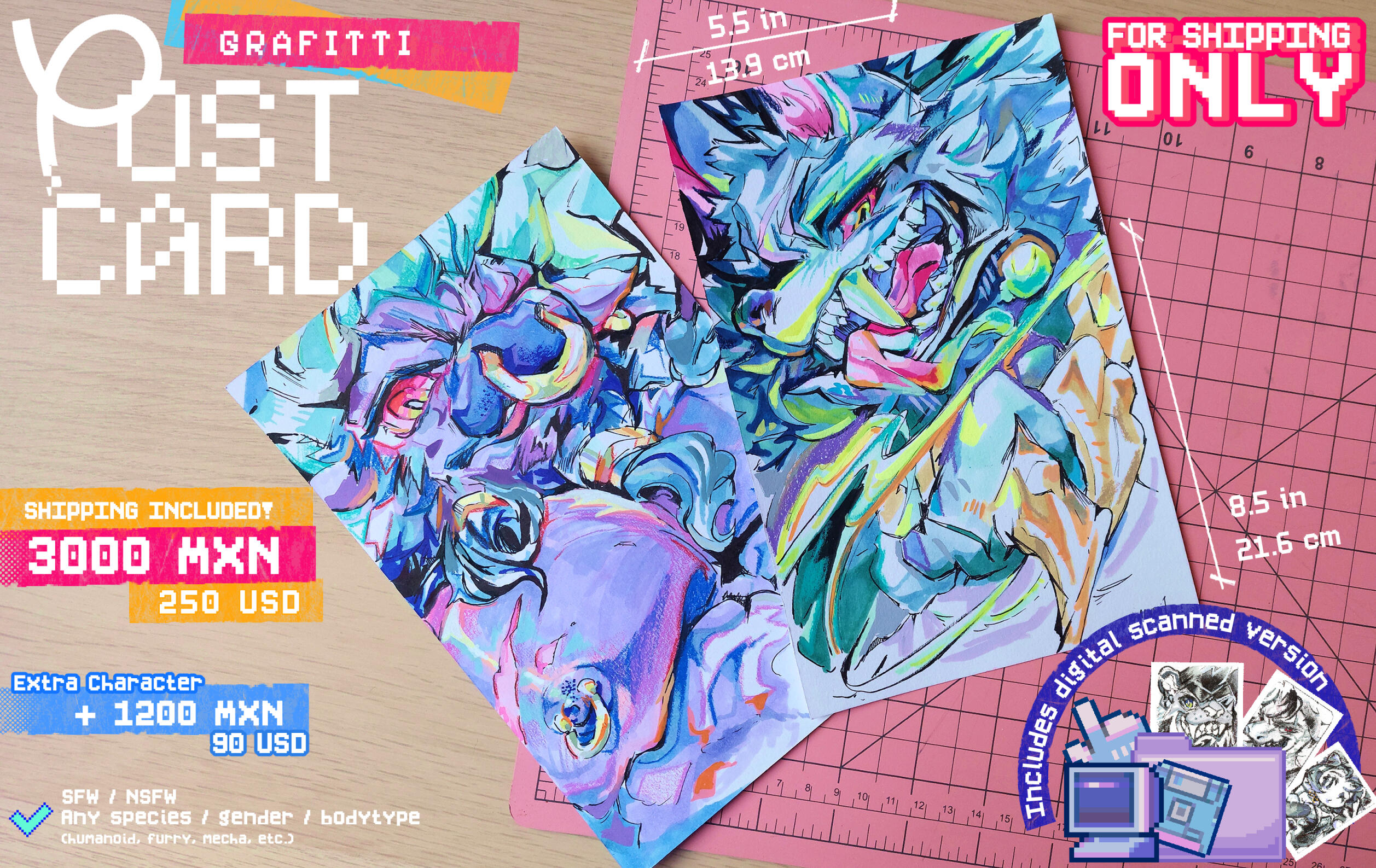 Opciones exclusivamente para eventos, ya sea para entrega en la mesa, envio, o bocetos durante el evento. Diferentes a las comisiones ofrecidas habitualmente.